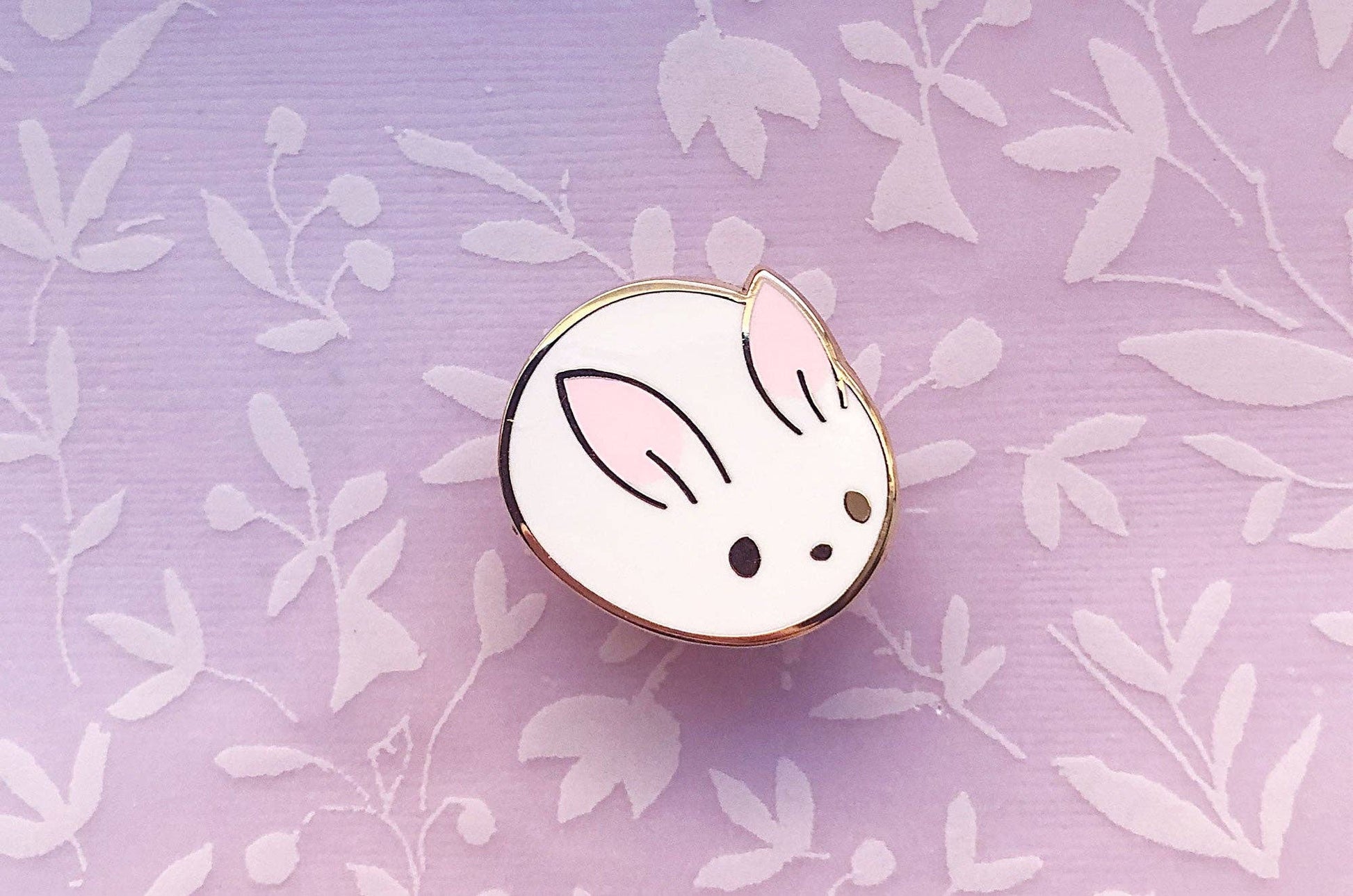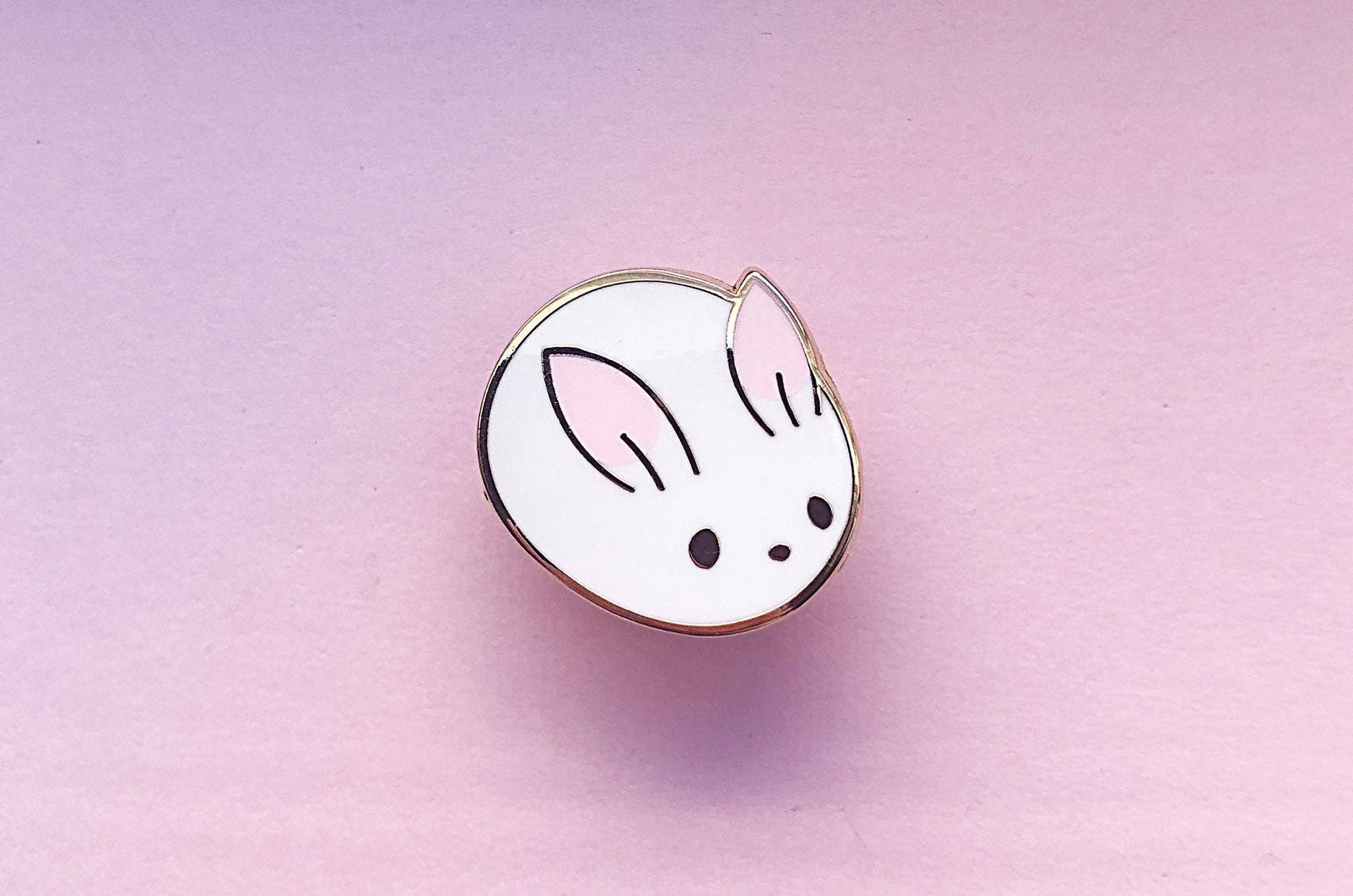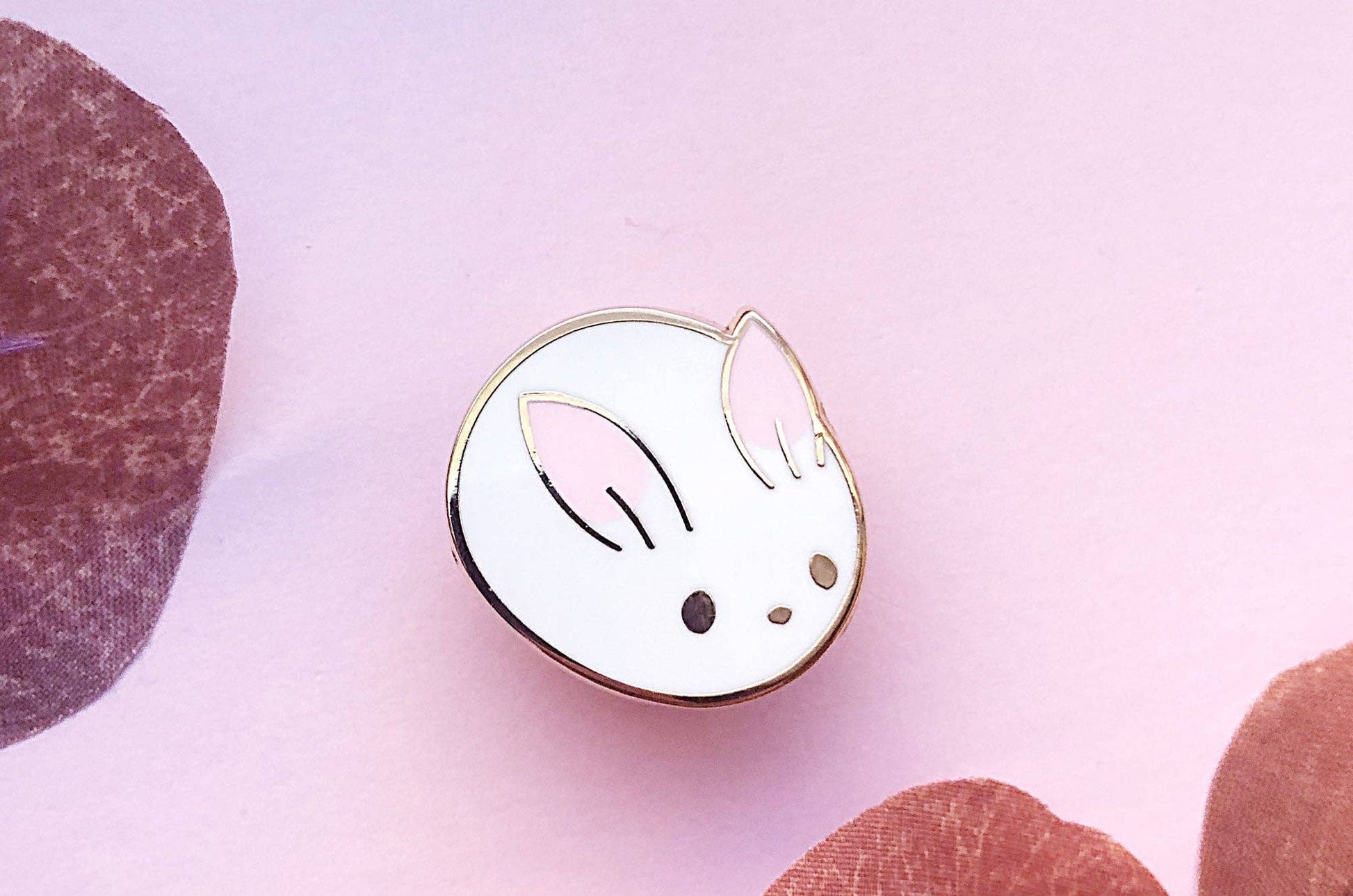 This adorable bunny bun enamel pin is dedicated to the delicious Japanese wagashi, some of which is in the shape of a cute rabbit. This little pin features a white and pink color palette in an utterly adorable 1" size set in gold-plated metal. This pin has a single post on the back.