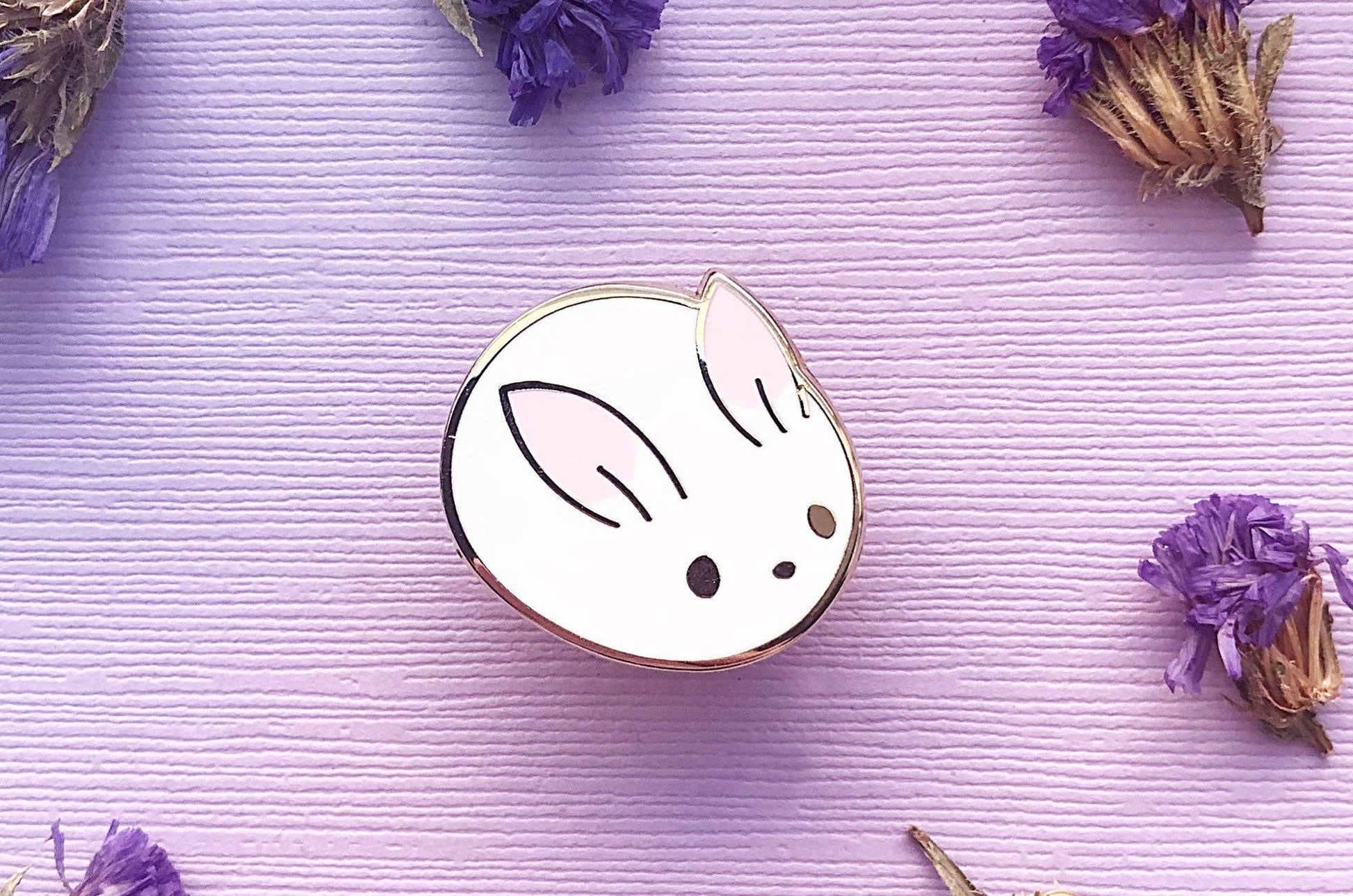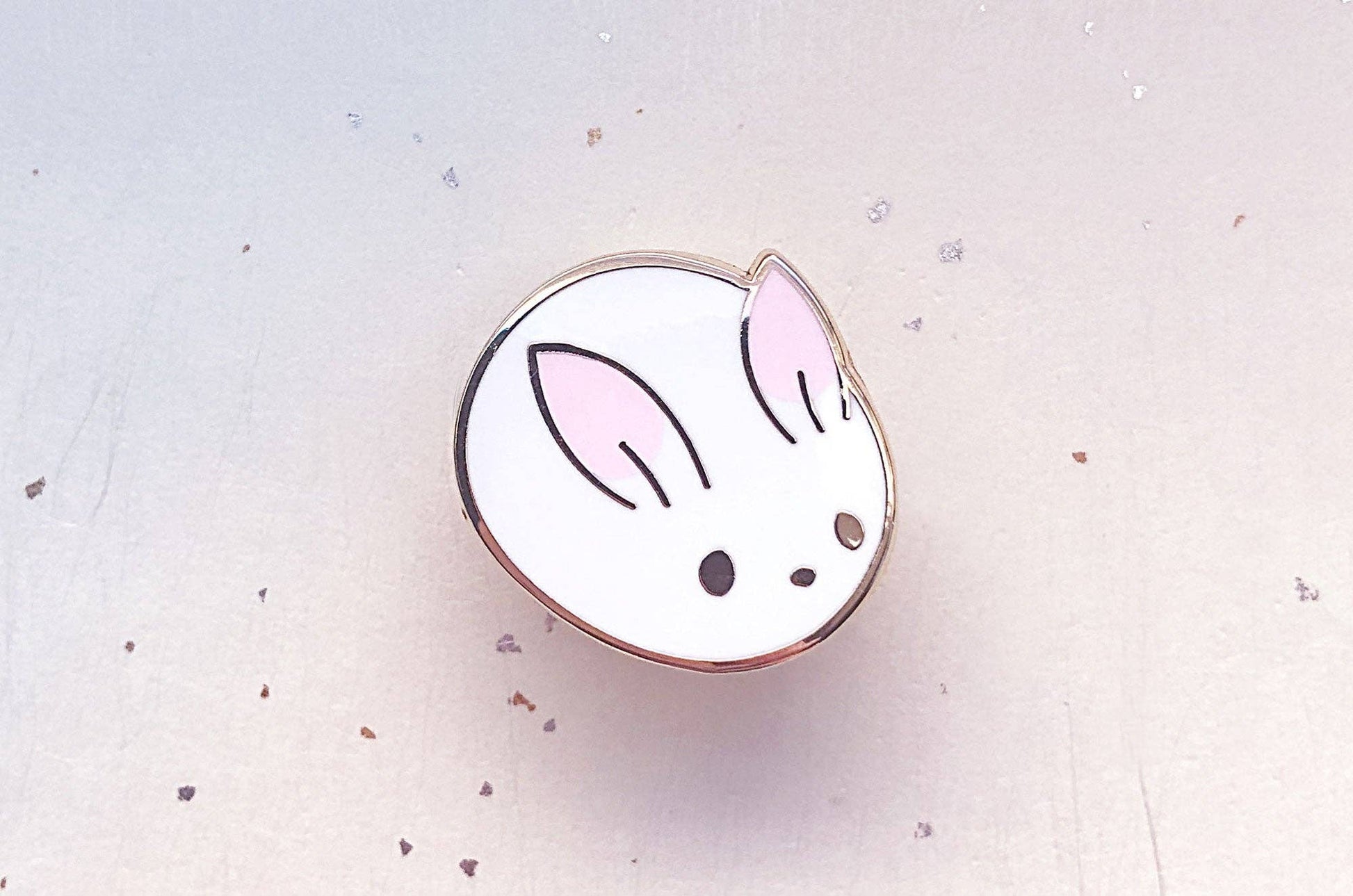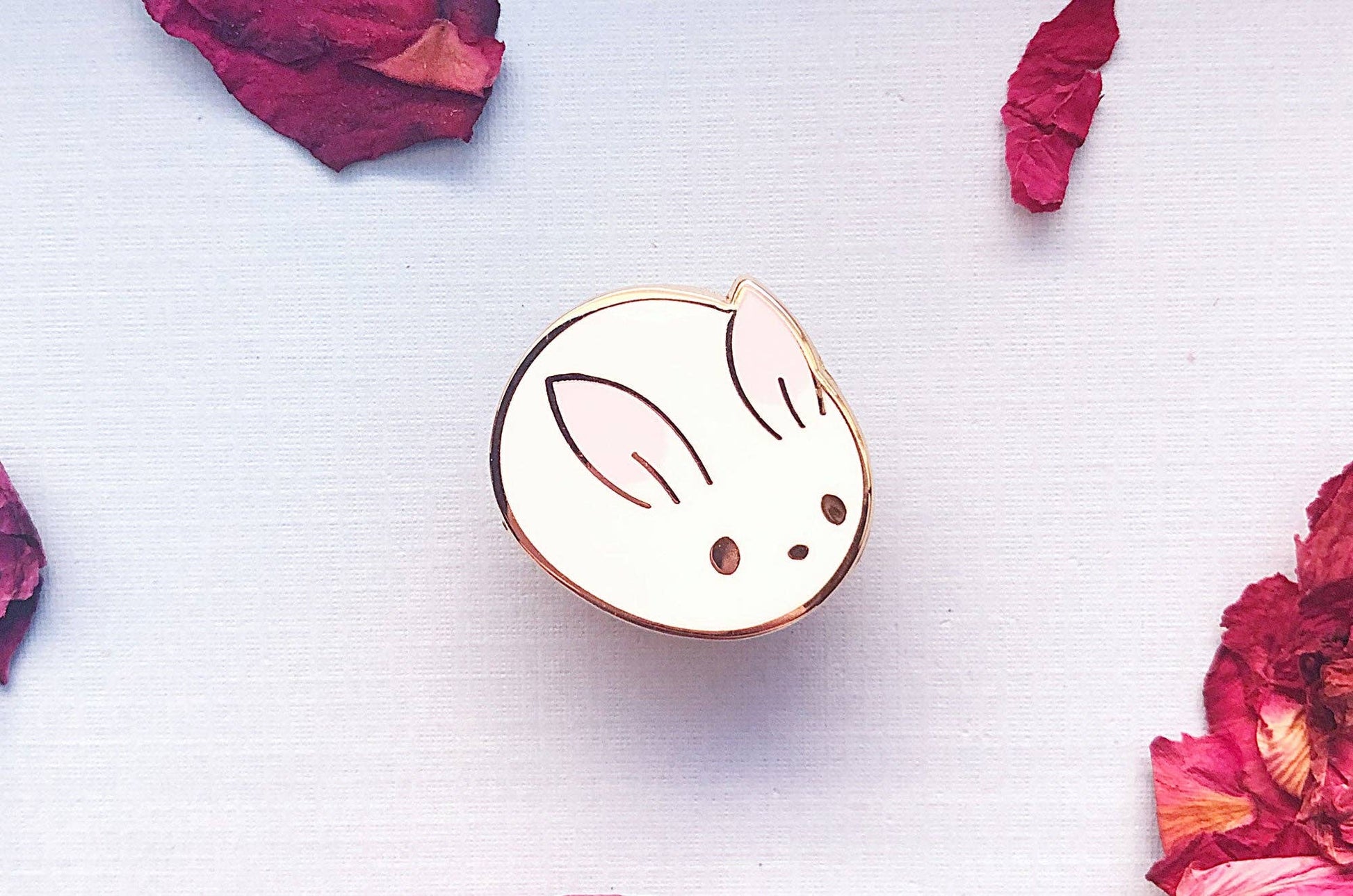 This adorable bunny bun enamel pin is dedicated to the delicious Japanese wagashi, some of which is in the shape of a cute rabbit. This little pin features a white and pink color palette in an utterly adorable 1" size set in gold-plated metal. This pin has a single post on the back.