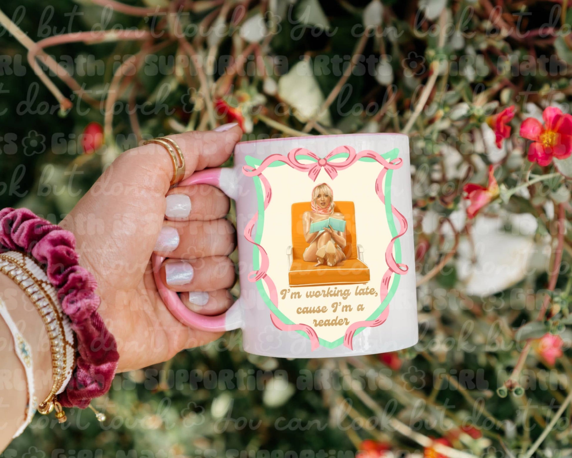 I’m Working Late Cause I’m a Reader Mug with Pink Handle