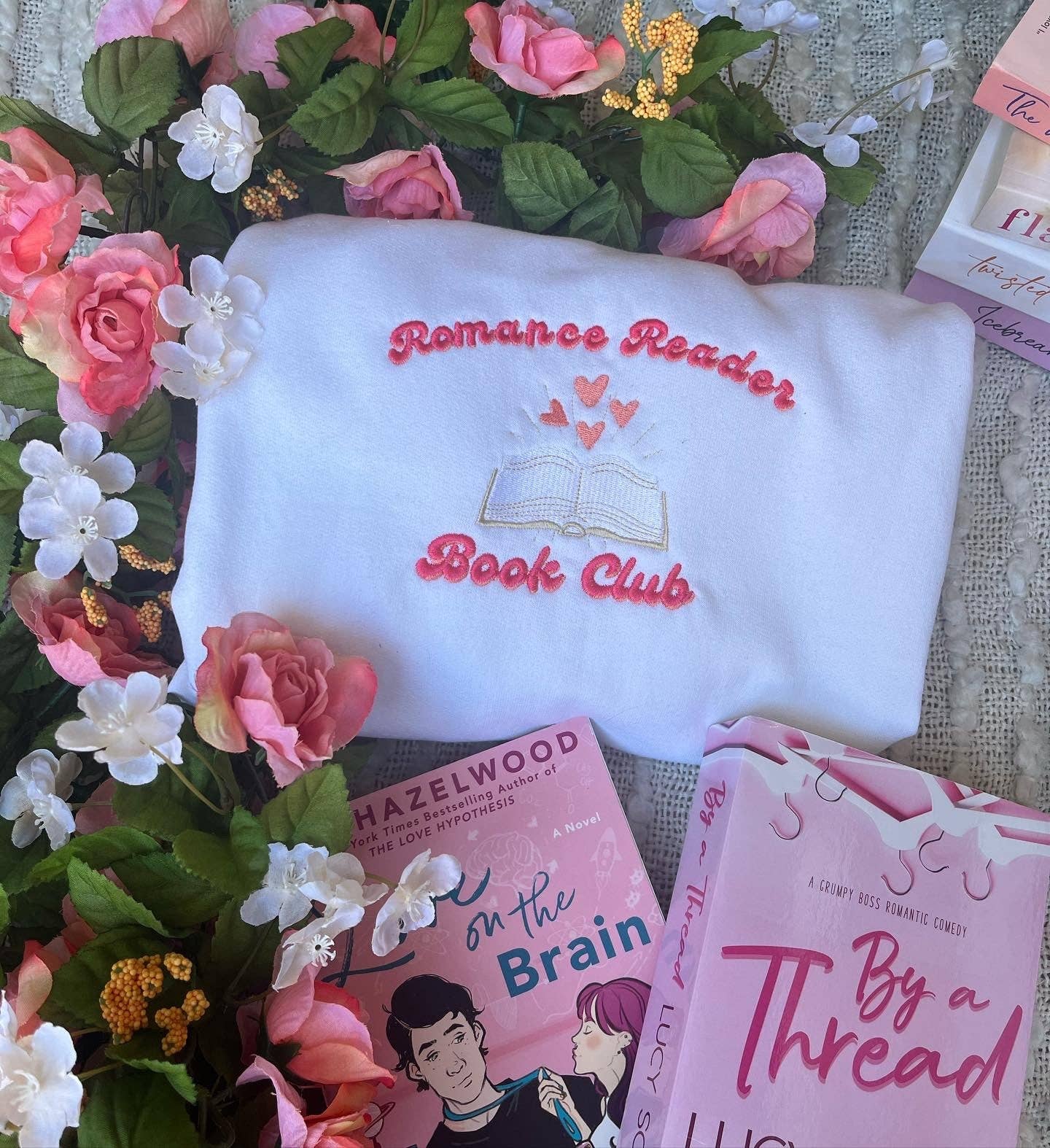 This comfy Crewneck is a MUST for any romance reader. It is embroidered with a book and "Romance Reader Book Club". These sweatshirts are unisex sizing. If you prefer an oversized fit, I recommend going a size up!